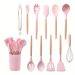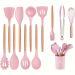 12pcs Pink Silicone Kitchen Utensil Set with Wooden Handles Easy Clean for Cooking Baking & Holiday Prep Essential Tools UK