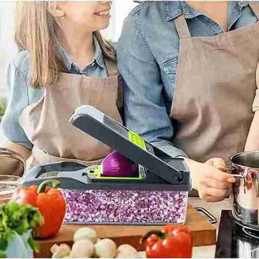 Elevate your cooking game with this professional 19-in-1 Vegetable Cutter. It features an 8-blade grater set, ideal for slicing, dicing, and shredding onions, carrots, and potatoes. The set includes a hand guard for safety. Perfect for home chefs aiming to streamline their vegetable preparation. This tool focuses on functionality and ease of use.