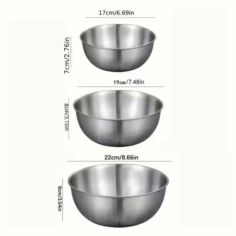 3pcs set, stainless steel mixing bowl, salad bowl, - durable, easy to store, suitable for kitchen preparation and storage, perfect for barbecue and outdoor cooking