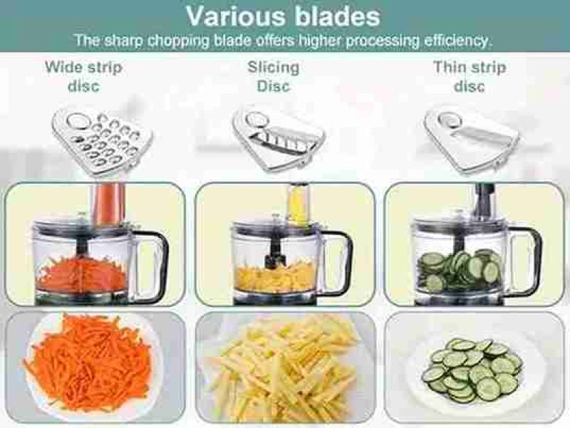 The 6-in-1 Food Processor Chopper Slicer Shredder Kneader Stirrer Blender is your ultimate kitchen tool. It features an 800W motor, ensuring efficient food preparation. With 3 speeds, you can customize the power for various tasks. The 2L bowl capacity is perfect for most cooking needs. This versatile appliance handles chopping, slicing, shredding, kneading, stirring, and blending seamlessly.