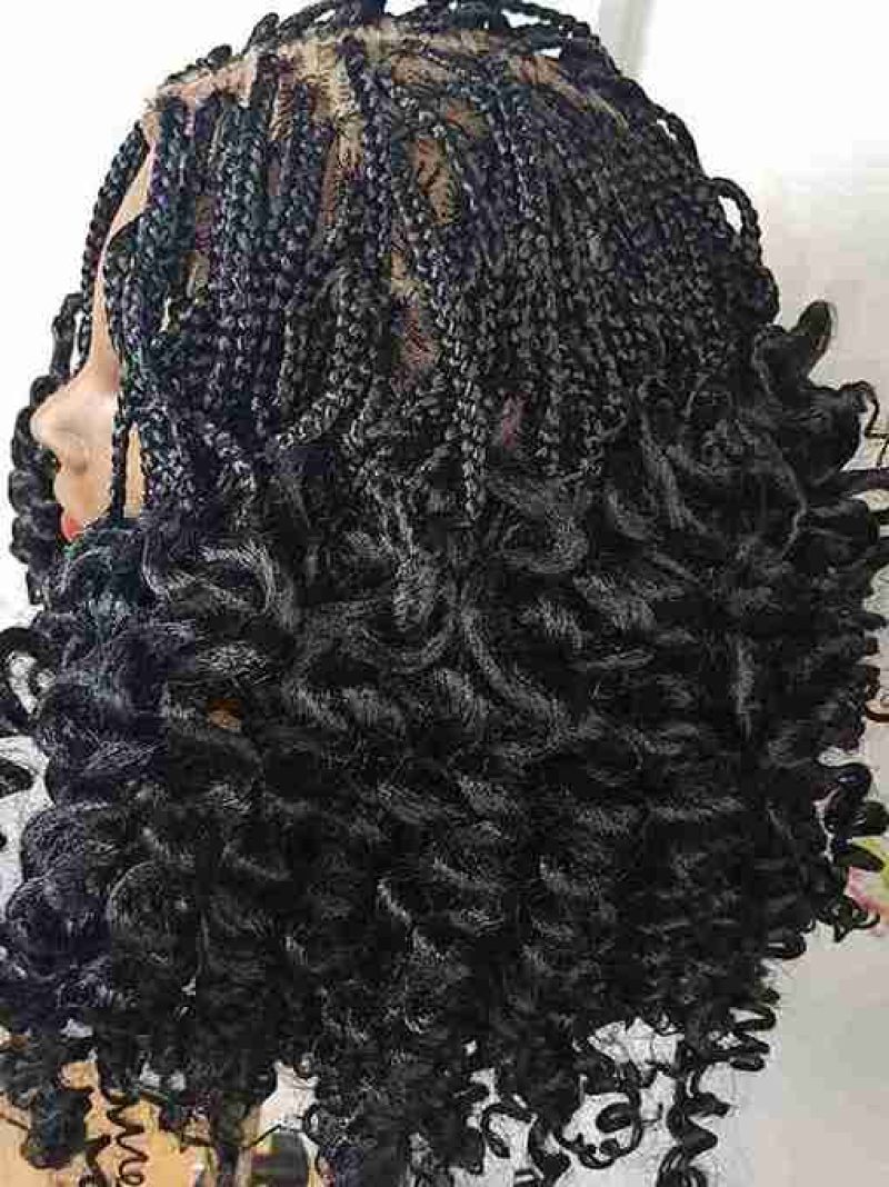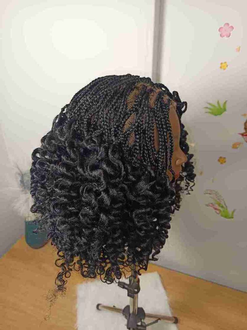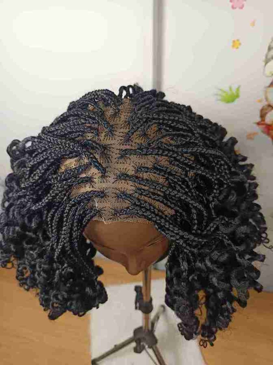 · Hair by Kira Black Braided Short Wig with Neat Cornrows and Full Bouncy Curls