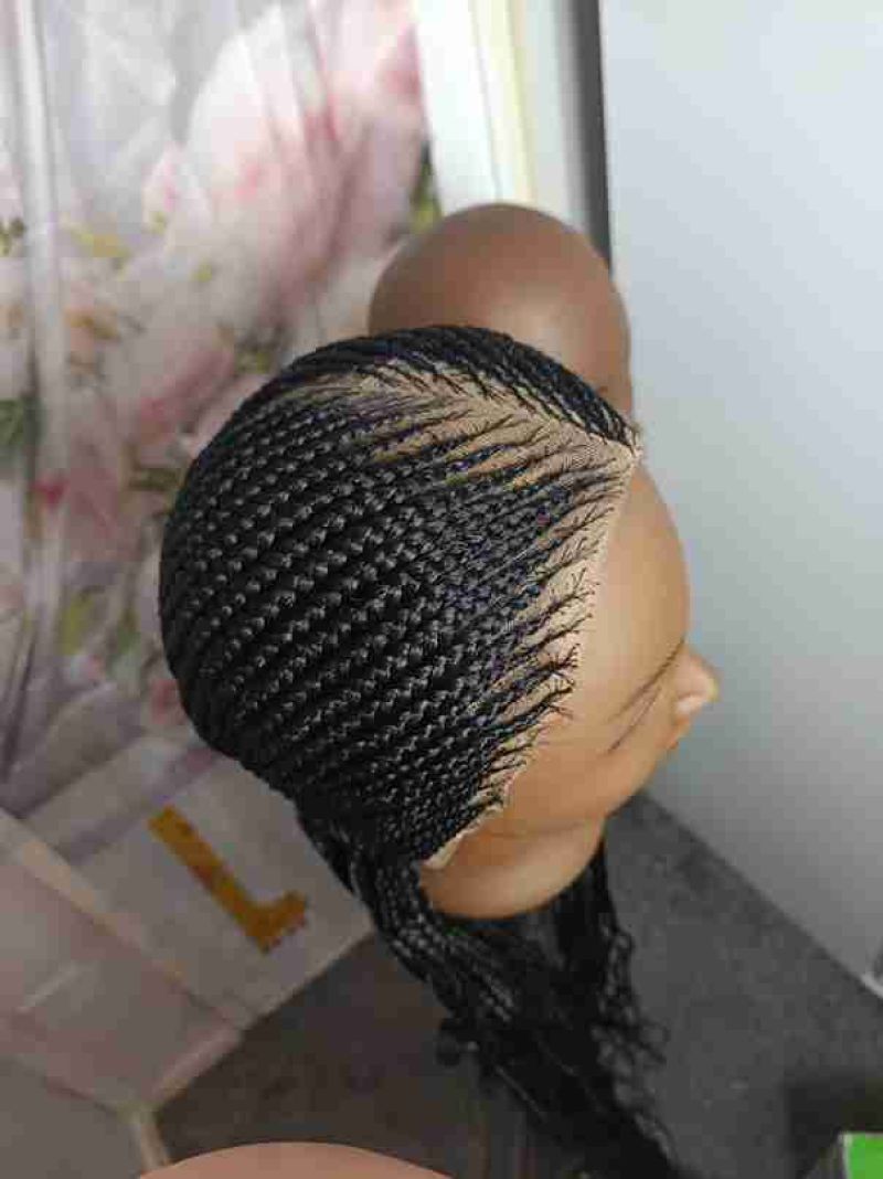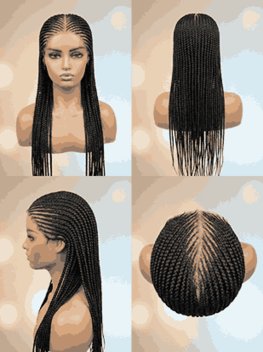 Hair by Kira Black Center Part Ghana Weaving Long Wig with Neat Feed-in Cornrows