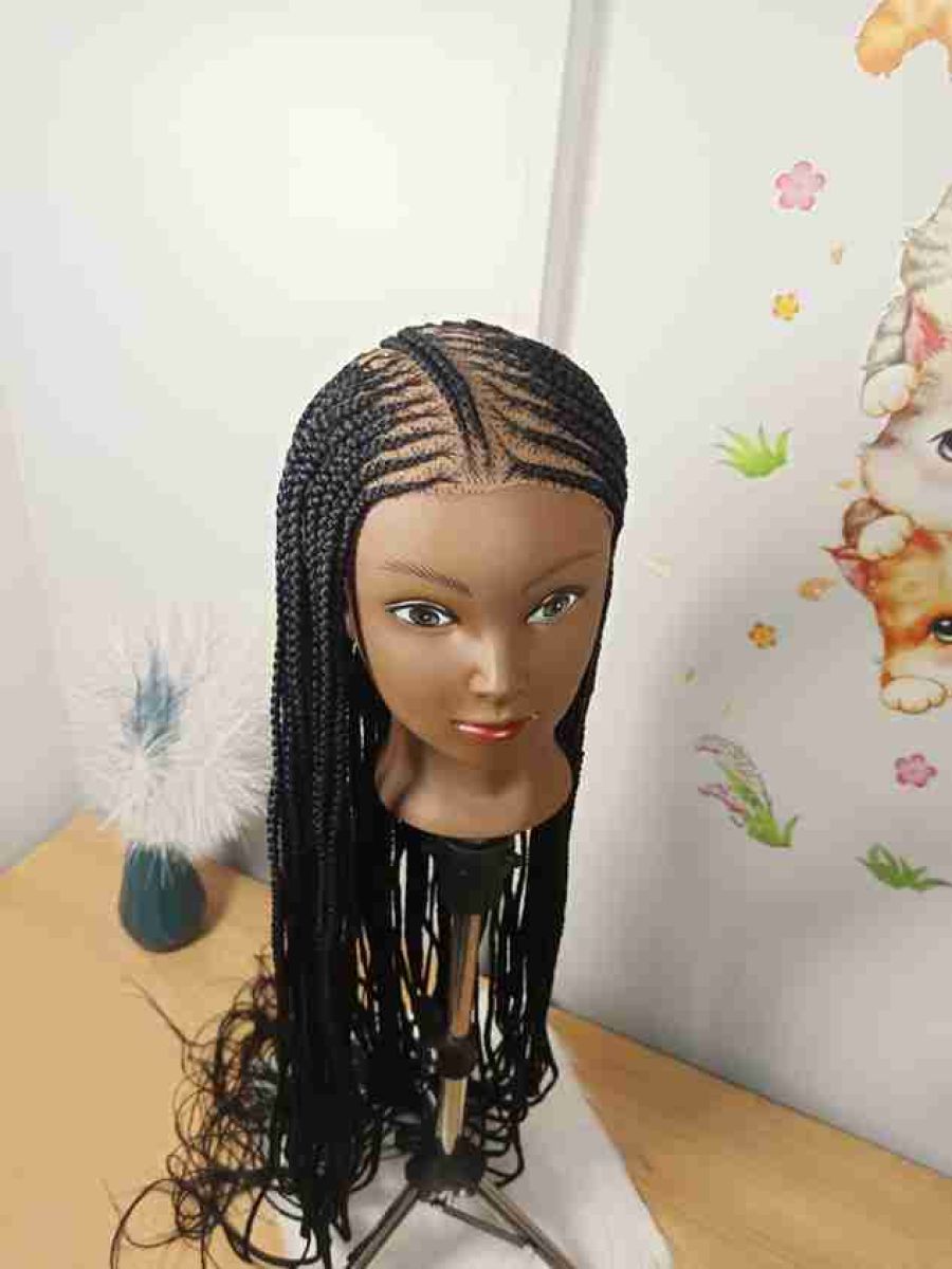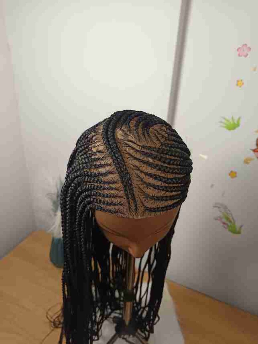 Hair by Kira Black Center Part Ghana Weaving Long Wig with Neat Feed-in Finish