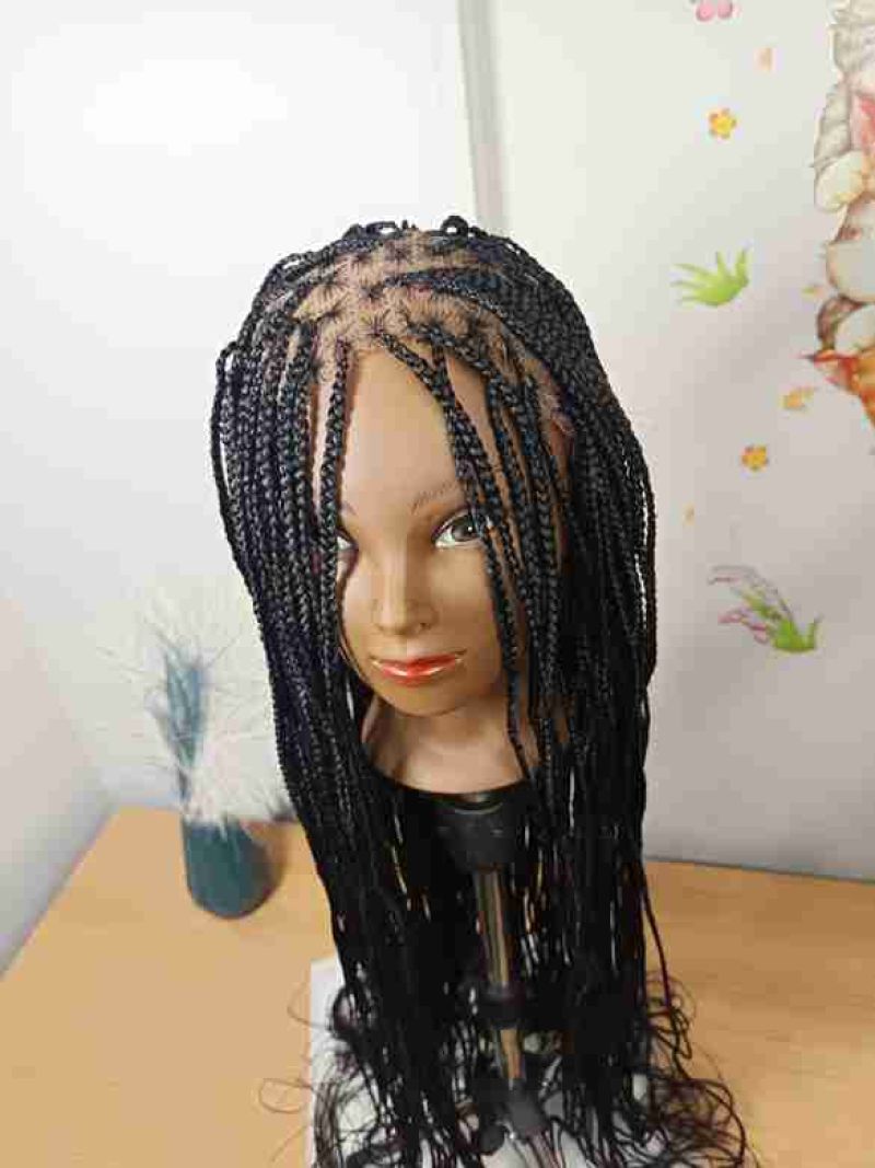 Hair by Kira Black Small Knotless Braids Long Braided Wig Curly Tips