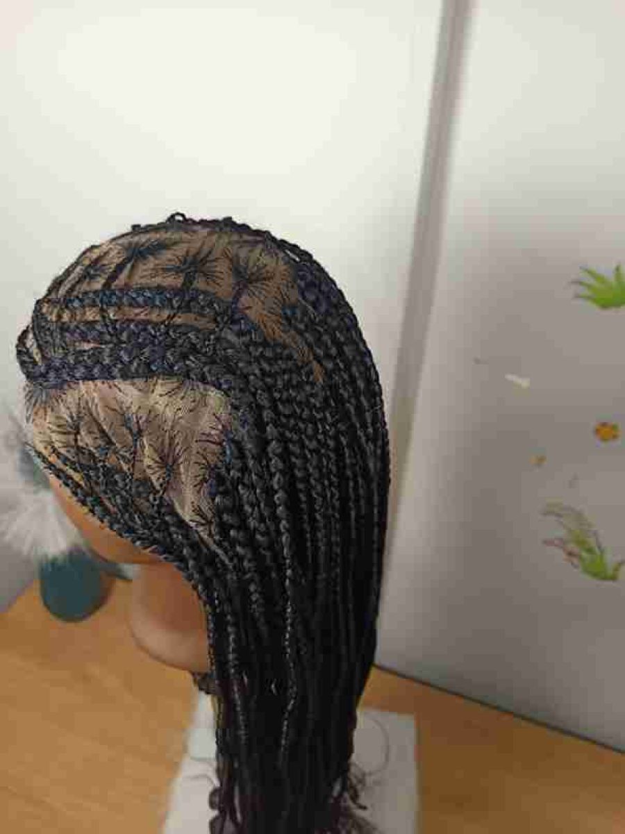 Hair by Kira Black Stitch Cornrows Long Braided Wig Curly Tips
