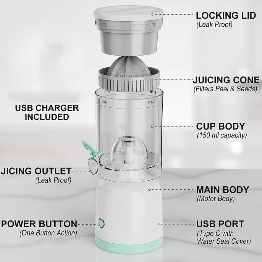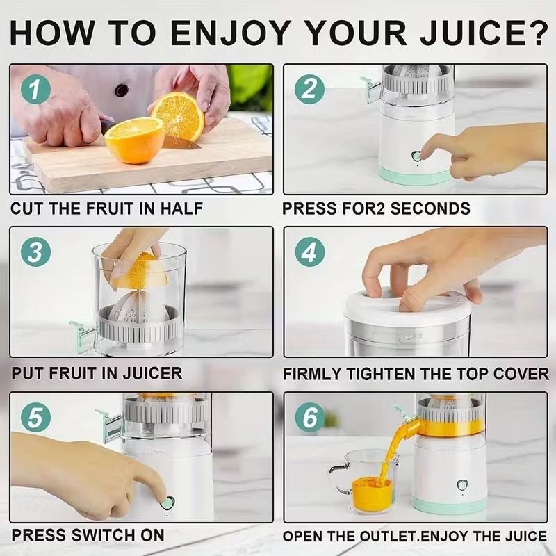 Compact USB-Powered Electric Juicer with Automatic Juice Extraction.