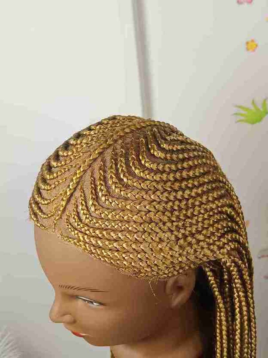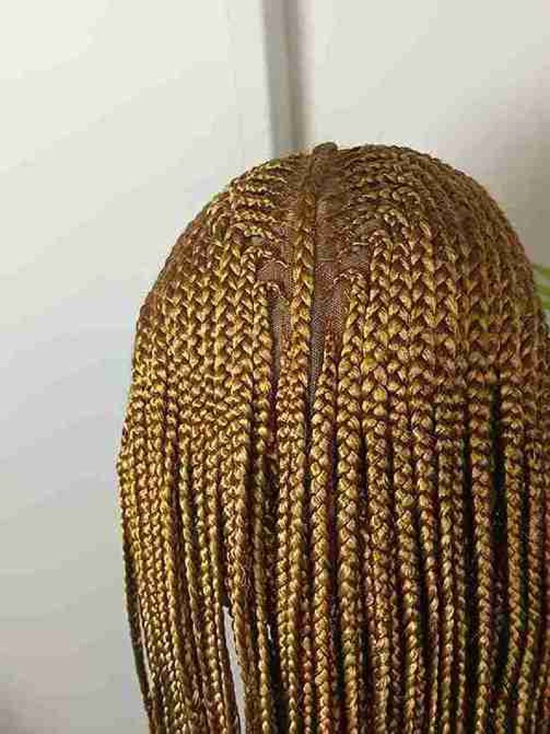 Hair by Kira Golden Brown Micro Box Braids Long-Length Wig with Clean Middle Part and Natural Scalp Lace Finish