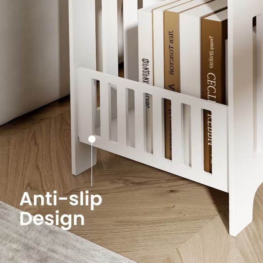 The White Modern Small Side Table is a versatile piece for your home. It features a storage shelf and a cabinet, perfect for organizing essentials. Made from softwood-PVC board, this nightstand is portable and space-saving. Ideal for bedrooms, living rooms, and hallways, it offers easy assembly. Compact and functional, this end table is a great addition to any room.