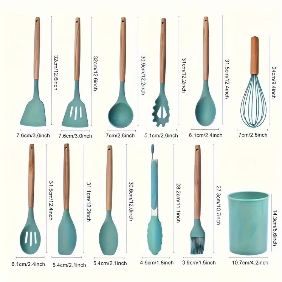 This 12pcs Silicone Pink Kitchen Utensil Set is perfect for cooking, baking, and holiday prep. Each set includes wooden handles for a comfortable grip. The silicone material ensures easy cleaning. Simplify your kitchen tasks effortlessly with this versatile set.