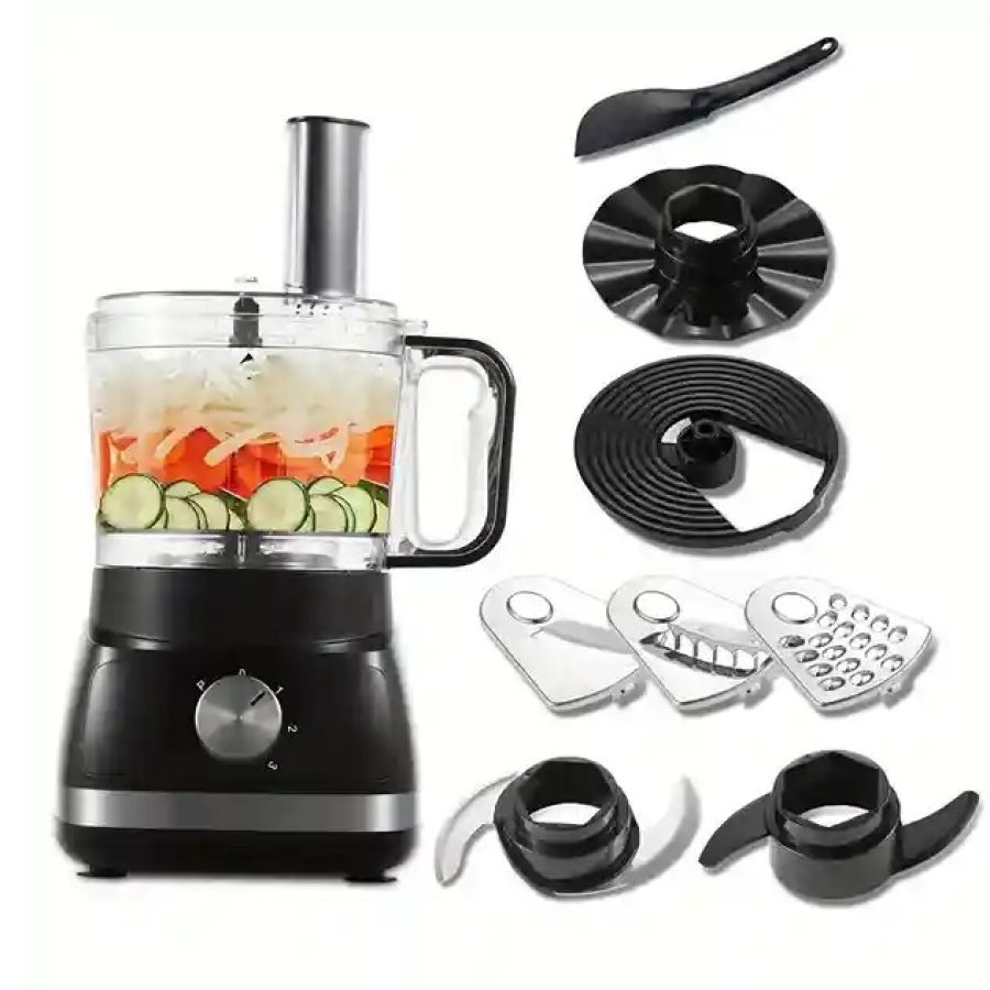 The 6-in-1 Food Processor Chopper Slicer Shredder Kneader Stirrer Blender is your ultimate kitchen tool. It features an 800W motor, ensuring efficient food preparation. With 3 speeds, you can customize the power for various tasks. The 2L bowl capacity is perfect for most cooking needs. This versatile appliance handles chopping, slicing, shredding, kneading, stirring, and blending seamlessly.