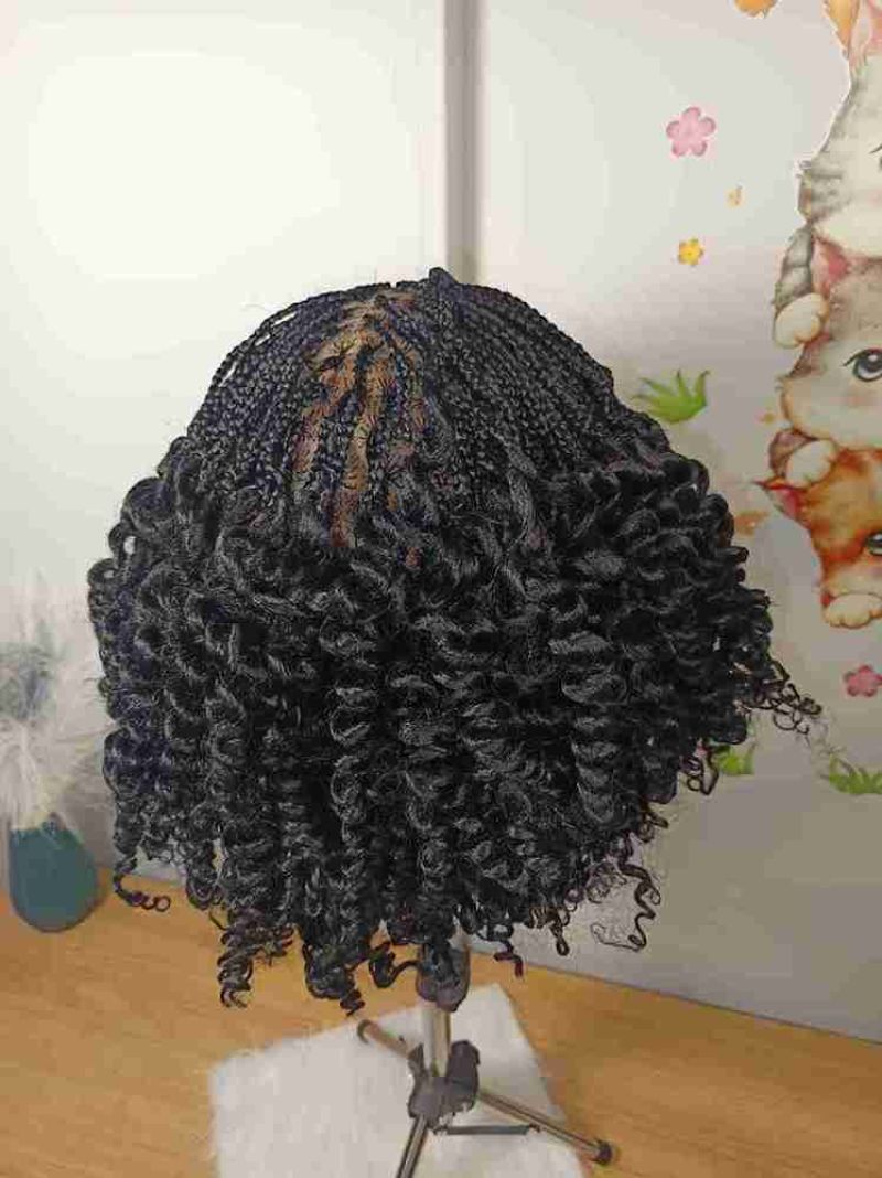 · Hair by Kira Black Braided Short Wig with Neat Cornrows and Full Bouncy Curls