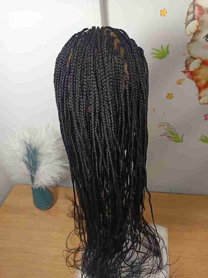Hair by Kira Black Small Knotless Braids Long Braided Wig Curly Tips