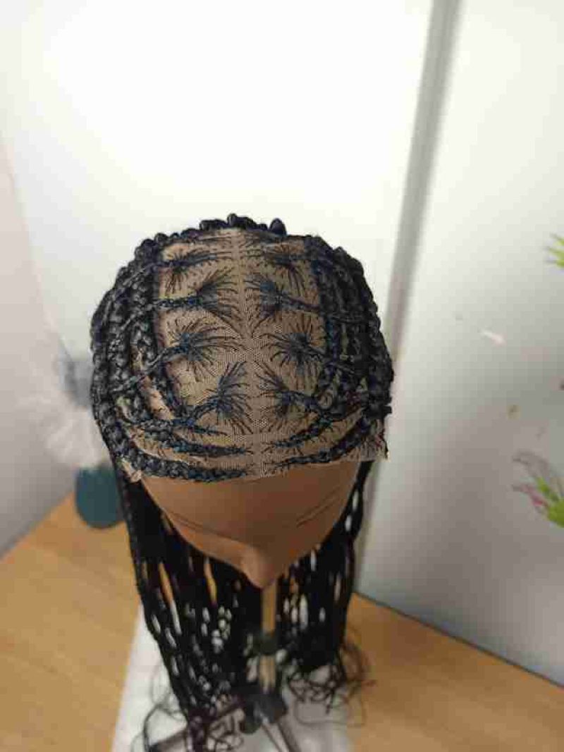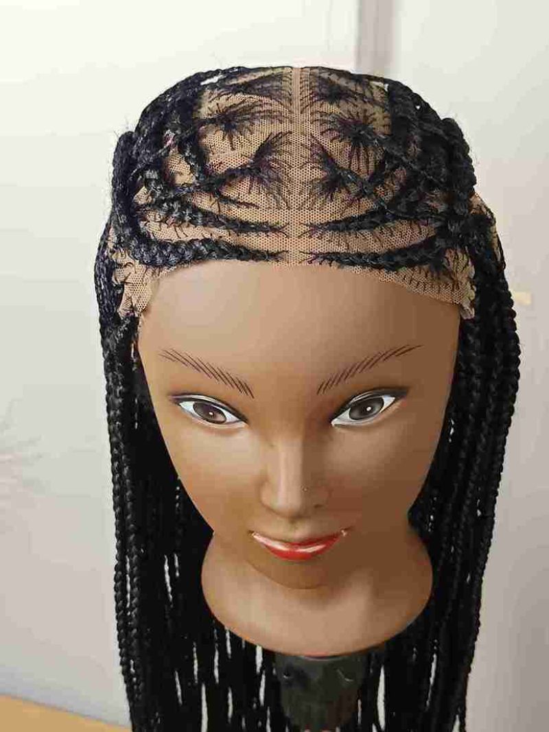 Hair by Kira Black Stitch Cornrows Long Braided Wig Curly Tips