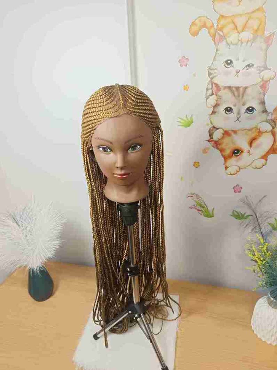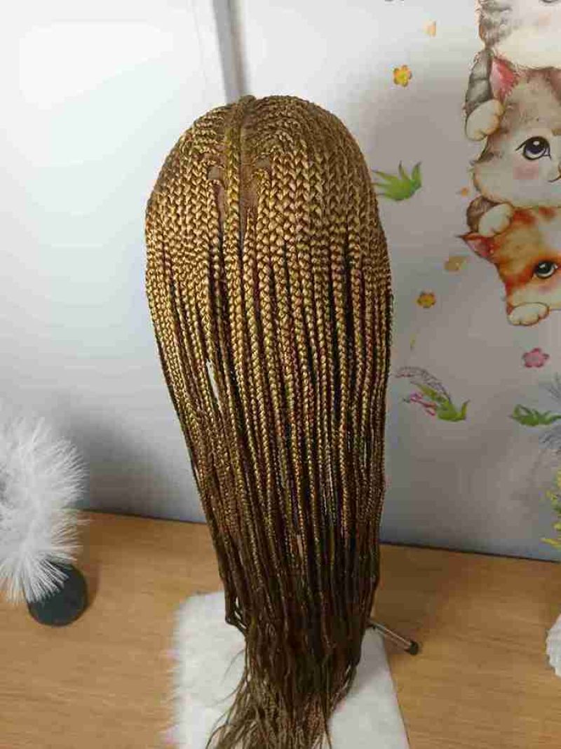 Hair by Kira Golden Brown Micro Box Braids Long-Length Wig with Clean Middle Part and Natural Scalp Lace Finish