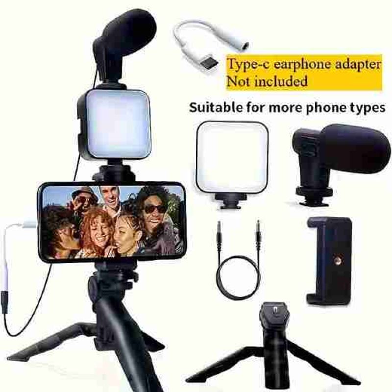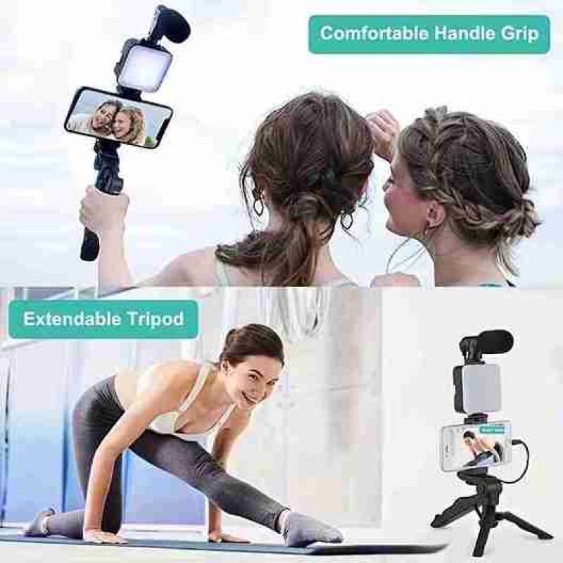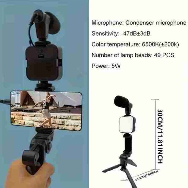 HOTU Portable LED Video Blogging Kit, Phone Holder, Ideal for Outdoor Live Streaming, Video Calls, and Vlogging